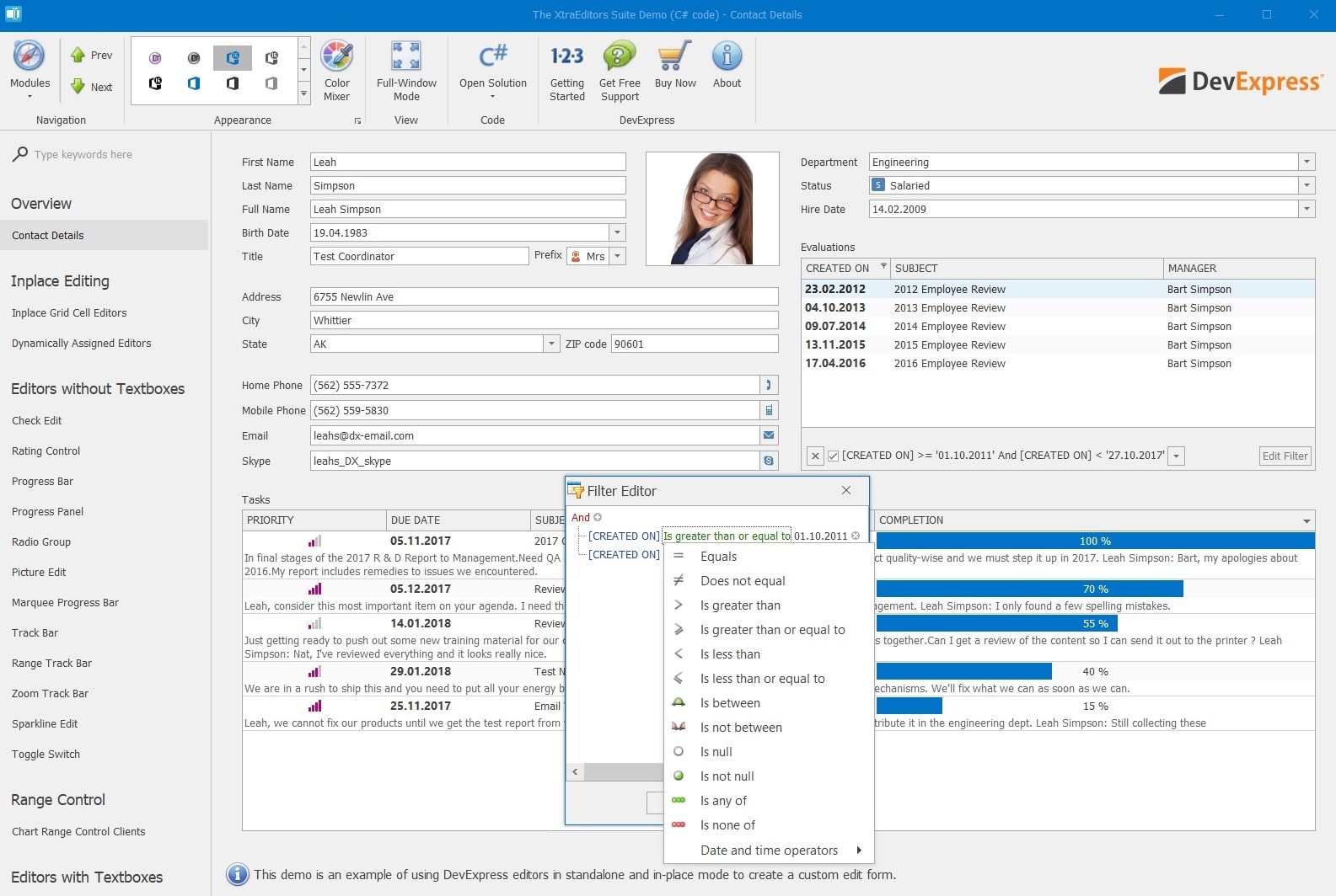 Durch Verwendung des DevExpress Frameworks reduziert sich die Entwicklungszeit vor allem bei Desktop- und Mobile-Anwendungen erheblich. Und Sie bekommen deutlich komfortablere Anwendungen als es mit Nativen .NET Framework Controls möglich ist. DevExpress ist insbesondere für die moderne Optik und die guten Filterfunktionen bekannt.